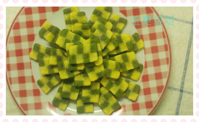 这款饼干是六一送给宝宝的礼物,黄绿两色的小格子漂亮又美味看上去就馋涎欲滴了!