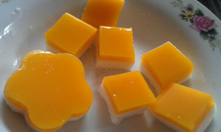 及以下步骤:放进冰箱冷藏,凝固后即可脱模切块 将果冻粉放进锅内,加入沸水,立即搅拌均匀,再稍微煮沸即可 倒入保鲜盒内,放进冰箱 将果冻粉放进锅内,加入沸水,立即搅拌均匀,再稍微煮沸即可 倒入保鲜盒内,放进冰箱 将鱼胶粉和砂糖倒入锅内 加入牛奶,立即搅拌均匀,慢火加热至沸腾 迅速用打蛋器打至湿性起发,大概打3-4分钟左右 倒入已经凝固的布丁上 放进冰箱冷藏,凝固后即可脱模切块