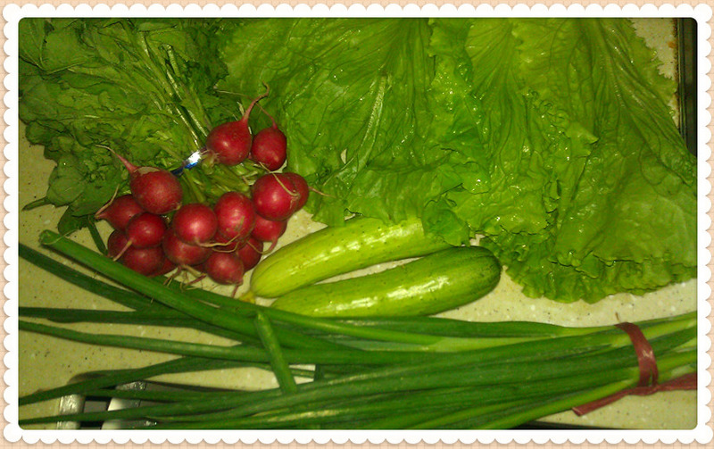 黄瓜(1根) / 生菜(1颗) / 香葱(100克) / 苦菊(100克) / 樱桃萝卜(200克)