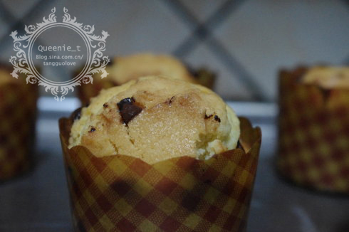 及以下步骤:预热好的烤箱..185度..25-30分钟..烤至充分膨胀..表面金黄即可. 吃吧吃吧 吃吧吃吧 将牛奶倒入打发好的黄油里(此时不需要搅拌) 将面粉、泡打粉混合过筛后,加入黄油里。 搅拌均匀 把拌好的面糊倒入纸杯里,2/3满..把巧克力豆撒在表面 预热好的烤箱..185度..25-30分钟..烤至充分膨胀..表面金黄即可. 吃吧吃吧 吃吧吃吧