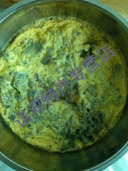 2、将2—3个鸡蛋在容器中搅拌均匀,容器中加入少量水,一汤匙猪油,少许盐、草果面,倒入切细的白参菌搅拌均匀