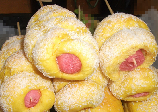 3、热狗上的膜最好去掉,这样热狗与面团可以粘合在一起!