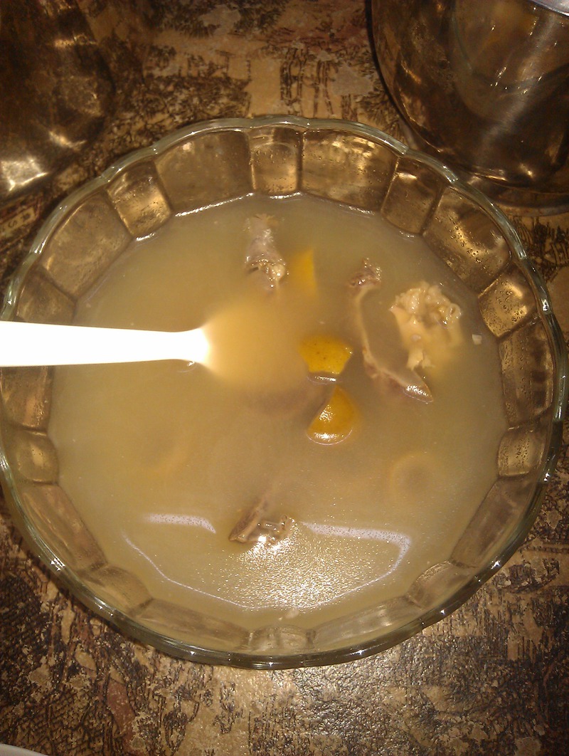 4、这是煮好的了~闪光闪得好像很亮...我跟老公都是比较喜欢青橄榄煲出来的味道,建议按照个人口味~
