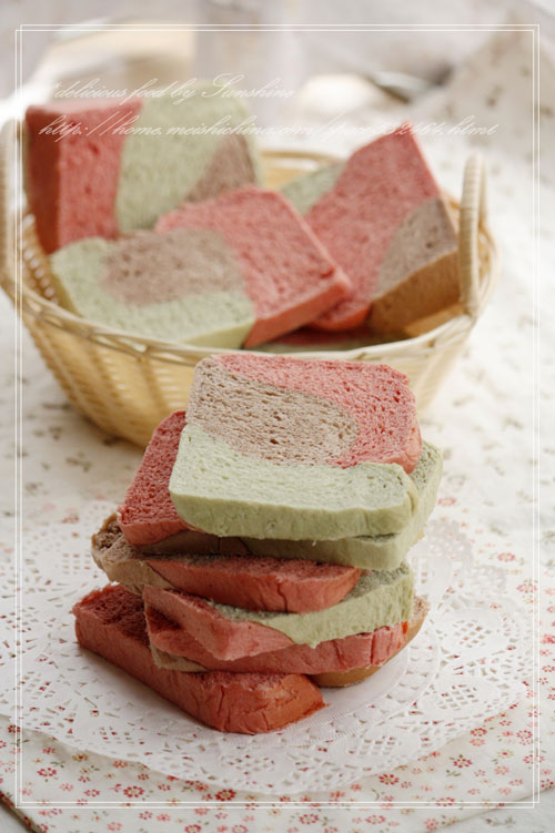 缤纷三色吐司烹饪方法 图片大全及制作所需厨具设备是网友推荐小编整理所得,是网友的分享推荐,是饮食文化的资源共享,中华美食文化是中华文明的具体践行,美食缤纷三色吐司烹饪制作就是在传承中华文化。