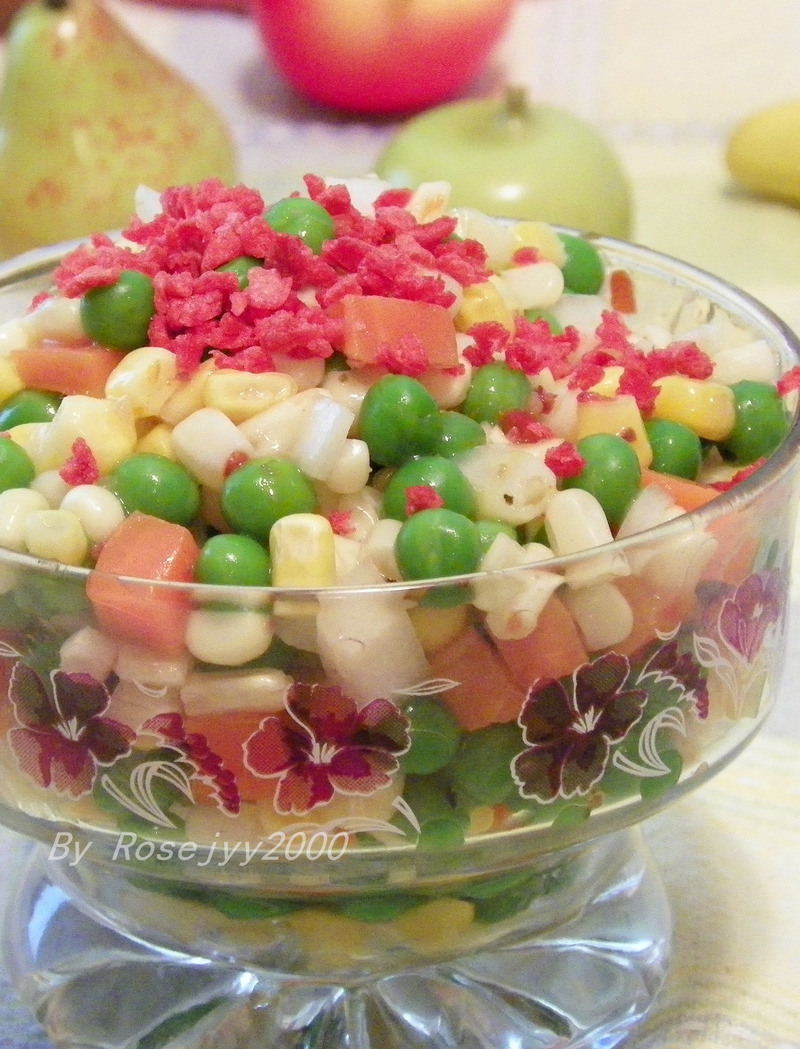 玉米青豆沙拉烹饪方法 图片大全及制作所需厨具设备是网友推荐小编整理所得,是网友的分享推荐,是饮食文化的资源共享,中华美食文化是中华文明的具体践行,美食玉米青豆沙拉烹饪制作就是在传承中华文化。