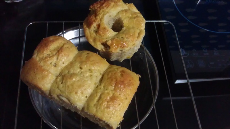 及以下步骤:剩下的两个小面团再放入另一个模具中 然后准备一碗热水,放入烤箱用 接着把面包放入烤箱等待二次发酵,约四十分钟 将面包取出,刷上蛋液,同时烤箱150度预热,接着将面包两入烤箱,烤约40分钟,即可 看,成品出炉了,好象面揉得不是太精致了 再来一张细节图,真的太粗糙了,看来还是得人工揉的比较好吧,要不就是我操作不当所致 接着把面包放入烤箱等待二次发酵,约四十分钟 将面包取出,刷上蛋液,同时烤箱150度预热,接着将面包两入烤箱,烤约40分钟,即可 看,成品出炉了,好象面揉得不是太精致了 再来一张细节图,真的太粗糙了,看来还是得人工揉的比较好吧,要不就是我操作不当所致