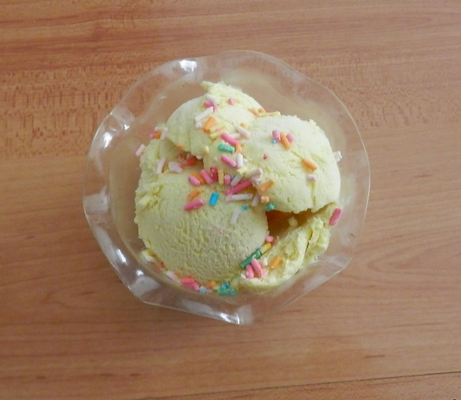 及以下步骤:倒入果汁机中榨成芒果泥 将榨好的芒果泥倒入煮好冷却的蛋黄液中 将芒果泥和蛋黄液拌匀 拌好了加了芒果泥的蛋黄液让一边备用。 将淡奶油摇匀倒在盆里加40克白糖 用打蛋器打到发,但不要全打发,打至六到七成发就行了。 奶油打发后将拌好备用的蛋黄芒果泥轻轻倒入盆中拌匀,(最好是分几次倒入,在每次倒入的拌匀后再倒因为这样更容易拌匀只是稍费时间一点。) 将拌好的冰淇淋倒入能密封的饭盒饭中放入冰箱冷冻 将冷冻一小时后冰淇淋取出刮松再次放进冰箱如此反复的三四次后就能吃到美味香甜的冰淇淋了。 美味香甜的冰淇淋了做好了,撒上点糖果粒点缀一下是不是更好看呀??嘿。