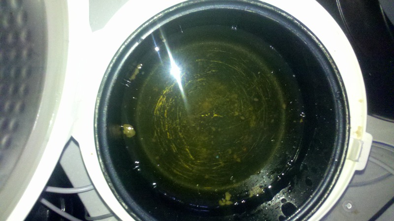 5、找个勺子顶住按键成煮饭键 中间用铲子搅拌下 防止粘连影响出油效果。