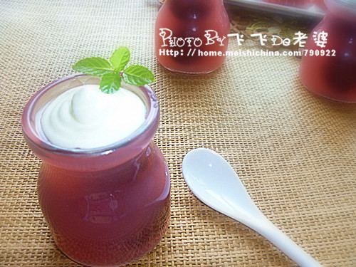 及以下步骤:烧好后的琼脂液倒入碗中。 将杨梅汁倒入,搅拌均匀。 在慕斯瓶中放入几粒杨梅。 再倒入调好的杨梅汁。放入冰箱冷藏待凝固即可。 如果没有慕斯瓶,也可用蛋挞模制作,只需将杨梅放入,倒入杨梅汁,同样放入冰箱冷藏待凝固即可轻松脱模。 将打发好的淡奶油倒入裱花嘴中,在凝固的凉糕上挤上奶油装饰即可食用。 在慕斯瓶中放入几粒杨梅。 再倒入调好的杨梅汁。放入冰箱冷藏待凝固即可。 如果没有慕斯瓶,也可用蛋挞模制作,只需将杨梅放入,倒入杨梅汁,同样放入冰箱冷藏待凝固即可轻松脱模。 将打发好的淡奶油倒入裱花嘴中,在凝固的凉糕上挤上奶油装饰即可食用。