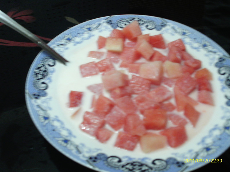 西瓜(酸奶半杯) / 学生饮用奶(乳酸味的)(适量)