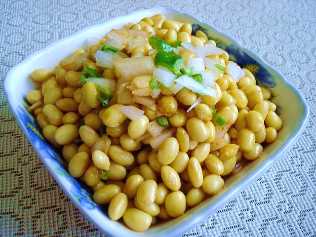 我家就爱喝豆浆,而且是自己榨的,每天都的喝,以至于邻居就怀疑,你每天早晨家里就有翁翁的声音,在干什么一大早晨,我说在榨豆浆,邻居不相信天天都喝豆浆啊,我说至少一周要喝上3-4次吧。原来你的皮肤亮亮的就是喝豆浆喝的,哈哈,被邻居的幽默说中了.这道酸辣凉拌黄豆最适合炎热的夏季食用,开胃爽口。 黄豆有豆中之王之称,被人们叫做植物肉、绿色的乳牛,营养价值最丰富。黄豆对女人来说可是好东西,美容的佳品,尤其是里面含有植物雌激素能改善皮肤衰老,还能缓解更年期综合征。还含有蛋白酶抑制素,对乳腺癌的抑制效果最为明显。