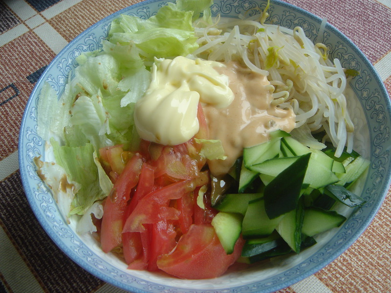 及以下步骤:绿豆芽洗净用开水焯一下,半分钟即可。捞出放入凉水中迅速降温,保持豆芽的脆嫩。 黄瓜、西红柿、生菜洗净控干。黄瓜切丝,西红柿切长条,生菜撕成核桃大块。然后将其放入容器中。 绿豆芽洗净用开水焯一下,半分钟即可。捞出放入凉水中迅速降温,保持豆芽的脆嫩。 黄瓜、西红柿、生菜洗净控干。黄瓜切丝,西红柿切长条,生菜撕成核桃大块。然后将其放入容器中。 绿豆芽洗净用开水焯一下,半分钟即可。捞出放入凉水中迅速降温,保持豆芽的脆嫩。 黄瓜、西红柿、生菜洗净控干。黄瓜切丝,西红柿切长条,生菜撕成核桃大块。然后将其放入容器中。 绿豆芽洗净用开水焯一下,半分钟即可。捞出放入凉水中迅速降温,保持豆芽的脆嫩。 黄瓜、西红柿、生菜洗净控干。黄瓜切丝,西红柿切长条,生菜撕成核桃大块。然后将其放入容器中。 绿豆芽洗净用开水焯一下,半分钟即可。捞出放入凉水中迅速降温,保持豆芽的脆嫩。 麻酱适量放入小碗中用香油调稀倒入容器和切好的食材以及沙拉酱、盐、白醋、白糖搅拌均匀上桌即可。