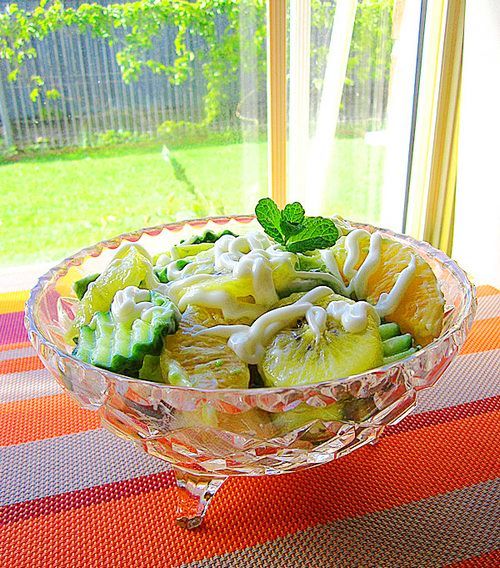 做这个沙拉最主要的目的也是为了可以达到减肥效果,我选择了低脂肪的沙拉酱,水果基本上都是我我喜爱的,牛油果、黄金奇异果等。很喜欢牛油果的口感,大家都觉得它的脂肪比较高,殊不知却全是有益的单元不饱和脂肪,能減少低密度脂蛋白胆固醇,降低患心脏病的风险。至于黄金奇果更具有美容养颜、抗衰老、提高免疫力、预防心血管疾病等功效,所以这是一道健康的水果沙拉,非常适合爱美人士。 炎炎夏日,国内的朋友不妨一试哦