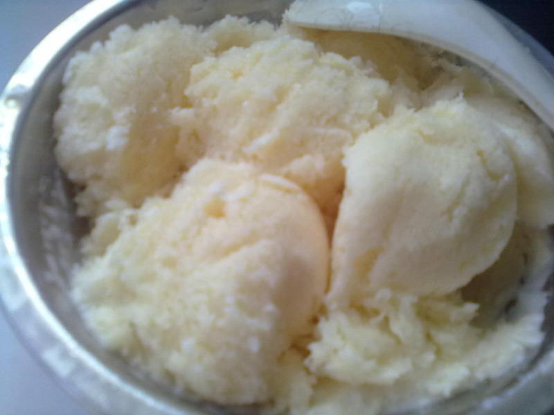 这款冰激凌完全是意外收获,原来晚上是想做蛋挞水的,因为家里没淡奶油了,所以想试试没有淡奶油烤出的蛋挞挞水怎样,只试了五个蛋挞。剩下的就直接冻冰箱了。结果蛋挞很成功,挞水同样很嫩滑,可以说是烤的鸡蛋羹吧。第二天想把它化了继续烤蛋挞(冰箱有以前做好的挞皮),拿出用勺子一挖,很松软,并没冻成大冰块,简直太高兴了。因为我们这里买不到淡奶油,都是靠网购很不方便。以前一直以为淡奶油是冰激凌和蛋挞水必备材料,现在看来不是,太高兴了,以后做冰激凌和蛋挞水不用为缺少淡奶油发愁了。 因为刚开始不知道是否会成功,所以并没有拍照,不过步骤相当简单,大家一看文字就能明白。 这个冰激凌直接冻了一晚,途中并没搅拌依然很软,相信大家多搅拌几次口感一定更好,由于没有冰激凌勺,只能用喝汤的勺子挖,图很难看,希望大家别嫌弃。