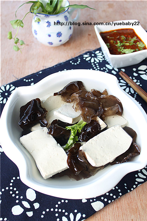 及以下步骤:木耳洗净撕成大片,豆腐切片,厚8毫米左右。 豆腐,木耳放入热水里焯熟,然后放入凉水里。 木耳洗净撕成大片,豆腐切片,厚8毫米左右。 豆腐,木耳放入热水里焯熟,然后放入凉水里。 木耳洗净撕成大片,豆腐切片,厚8毫米左右。 豆腐,木耳放入热水里焯熟,然后放入凉水里。 锅里倒底油,放入蒜末,姜末爆香。 倒入小米椒段炒香。 倒入酱油,醋,盐,煮约半分钟。。 最后在煮好的料汁里加入香油,芝麻酱,香葱,香菜,辣椒油搅拌均匀即可