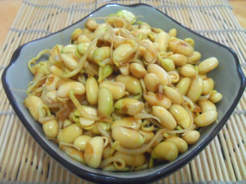 夏天温度高,这个时候在家发豆芽的好时间,自家发豆芽的好处一是安全,二是营养价值也比外面买的高出不少。在发的过程中一定要严密的避光,这次我让豆芽见了几次光,发的有些见绿了。。 用发好的豆芽,在锅里蒸熟,拌的时候比直接焯熟凉拌好吃的多。