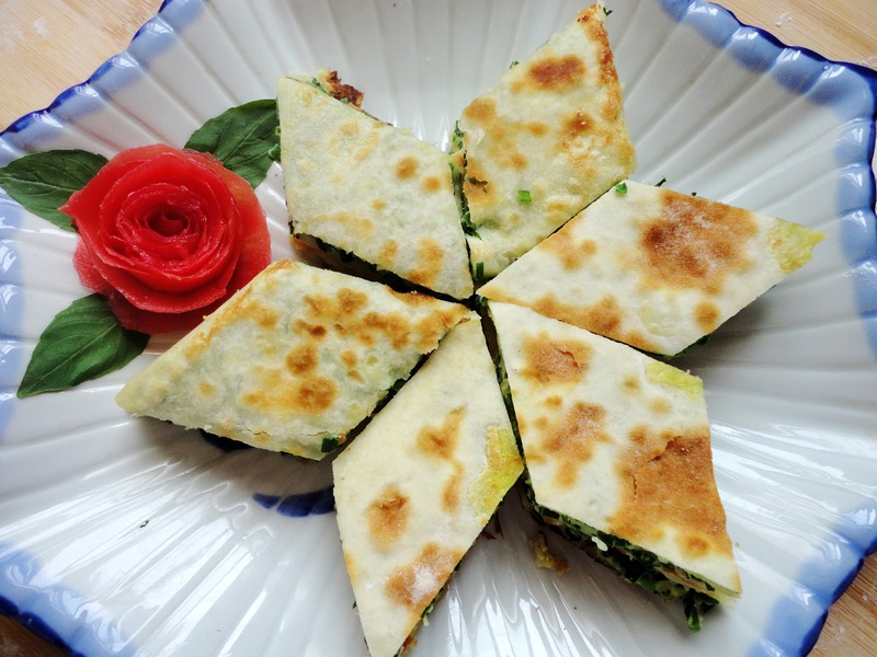 及以下步骤:在面条的中间倒放少量的韭菜蛋液... 在中间倒入蛋液后,一边折起盖住中间的蛋液,然后在折起的那一层再倒入一些蛋液再把另外的三分之一面皮折过来盖住蛋液即可下锅了 锅中放倒少量的油,煎至双面金黄色即可起锅食用了... 韭菜洗干净凉一下水切成小丁... 切好的韭菜中加入两个鸡蛋和适量的食盐搅拌均匀... 把烫面揉一下后均分成四等份... 把分好的面团擀成长条形的面皮.. 在面条的中间倒放少量的韭菜蛋液... 在中间倒入蛋液后,一边折起盖住中间的蛋液,然后在折起的那一层再倒入一些蛋液再把另外的三分之一面皮折过来盖住蛋液即可下锅了 锅中放倒少量的油,煎至双面金黄色即可起锅食用了...