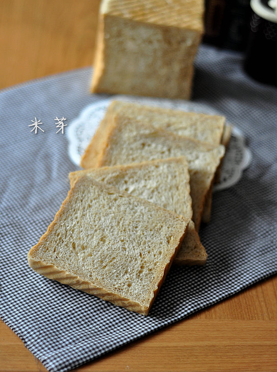 5、发至九分满,盖好盖子,烤箱180度预热10分钟,再放入吐司盒烤35分钟左右,烤好后立即取出脱模冷却。