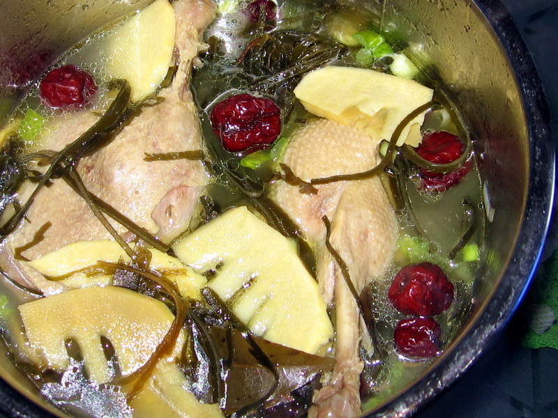 料酒(适量) / 姜(适量) / 红枣(适量) / 大葱(适量) / 茴香(适量) / 笋片(适量) / 香叶(适量) / 海带(适量) / 食盐(适量) / 蘑菇精(适量)