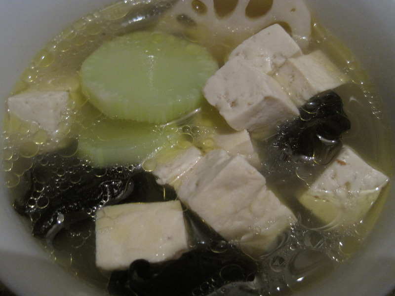 豆腐(1/3块) / 木耳(三四朵) / 青笋(五六片) / 藕切片(七八片)