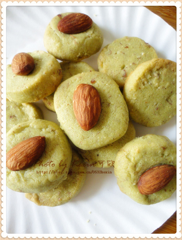 家里存放的大杏仁好久都没有动了,忽然想到做成饼干应该不错,买来的抹茶粉没有用到的机会,索性这次就让这些不动产动起来。——抹茶杏仁酥。 这个饼干因为没有用到鸡蛋,所以保质期会更长一些,据说密封冷冻可以放一个月,冷藏一周也不会坏。因为我做的少,所以没有放到那么久,当天就搞定啦
