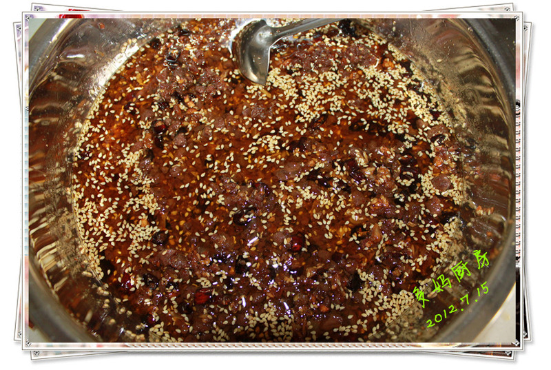 装炒好各种配料的小盆一定不能有水,最后装牛肉酱的瓶子也要擦干水分。以便于保存。