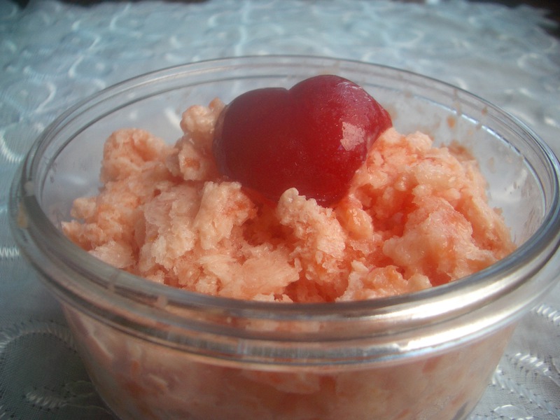7、放到冰箱冷冻室一小时,取出用勺子刮出沙沙的冰,藕叶!