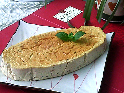 这是受到鲜虾咸芝士启示而制作的蛋糕。选用牛肉只是因为家里有现成的牛肉末,正好还剩有一点披萨酱,索性就加在一起了。披萨酱让蛋糕略略带有一点红色,味道也还不错。