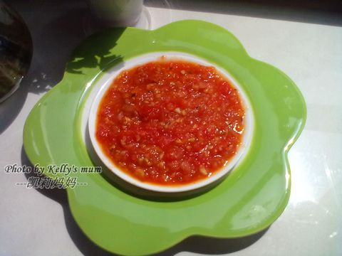 2.番茄尽量剁细一点,涂披萨饼底的时候容易均匀一些,放意面上拌起来也容易均匀
