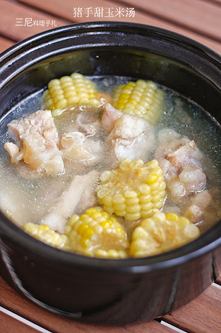 甜玉米猪手汤烹饪方法 图片大全及制作所需厨具设备是网友推荐小编整理所得,是网友的分享推荐,是饮食文化的资源共享,中华美食文化是中华文明的具体践行,美食甜玉米猪手汤烹饪制作就是在传承中华文化。