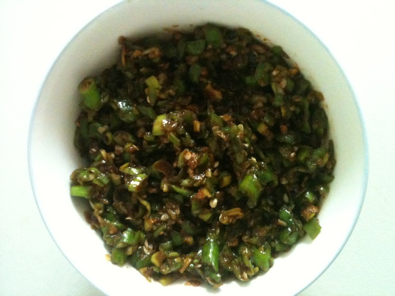 及以下步骤:准备一根大葱,这种细细的小辣椒,若有同学觉得太辣,可以选择那种厚皮的辣椒,不过水分会多些。葱和辣椒的比例根据个人喜好来搭配。 分别将葱和辣椒剁成碎末,不易太碎,装入碗中待用。 准备一根大葱,这种细细的小辣椒,若有同学觉得太辣,可以选择那种厚皮的辣椒,不过水分会多些。葱和辣椒的比例根据个人喜好来搭配。 分别将葱和辣椒剁成碎末,不易太碎,装入碗中待用。 准备一根大葱,这种细细的小辣椒,若有同学觉得太辣,可以选择那种厚皮的辣椒,不过水分会多些。葱和辣椒的比例根据个人喜好来搭配。 分别将葱和辣椒剁成碎末,不易太碎,装入碗中待用。 准备一根大葱,这种细细的小辣椒,若有同学觉得太辣,可以选择那种厚皮的辣椒,不过水分会多些。葱和辣椒的比例根据个人喜好来搭配。 分别将葱和辣椒剁成碎末,不易太碎,装入碗中待用。 在碗中放入适量鸡精、盐、醋、香油、一汤勺大酱。 用筷子将其搅拌均匀,封上保鲜膜,放入冰箱,一个小时后便可以出现在餐桌上咯。放入冰箱是为了更入味,而且凉些会更爽口。嫌麻烦的同志们可以搅拌完直接食用。