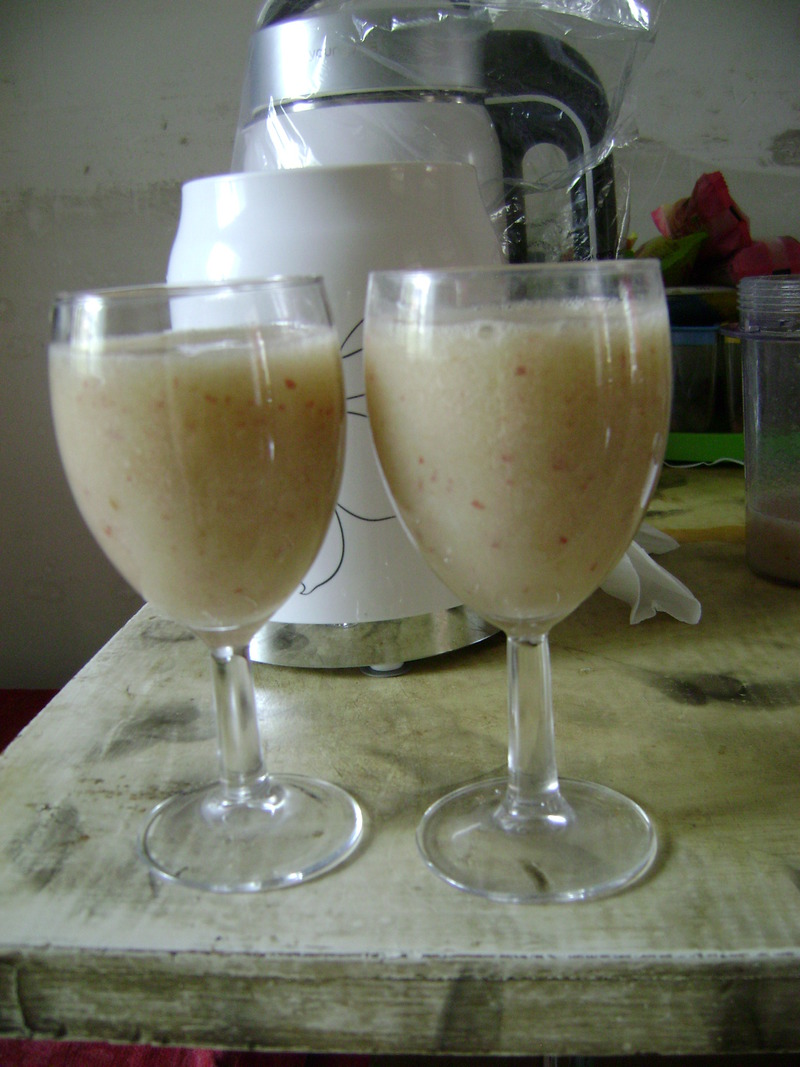 6、成品图,因为没有去皮,所以出来的果汁有红色的小点点,很好看