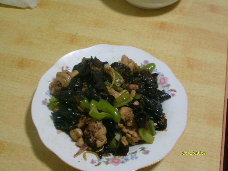 及以下步骤:出锅就可以了,香味四溢呀,美味不可阻挡,大家动手做一做吧 黑木耳泡好洗净掰好大小,青椒去籽切段待用 鸡腿切块备用 黑木耳泡好洗净掰好大小,青椒去籽切段待用 鸡腿切块备用 切好生姜大蒜备用 锅里倒油,等热了之后倒入鸡腿爆炒一会,这时什么料都先不加只是用油炒会 炒的差不多了,加入青椒黑木耳,炒一会,再加入生姜大蒜,炒一会,再加入盐.生抽.料酒.小加点水,就可以盖上锅盖焖煮一会了 差不多焖4-5分钟,开盖继续炒一会看锅里的汁收的差不多了就好了,出锅前再加点鸡精就好啦 出锅就可以了,香味四溢呀,美味不可阻挡,大家动手做一做吧
