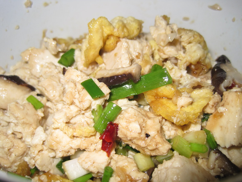 及以下步骤:豆腐:切成1cm厚的大片,放进开水锅中煮3分钟-捞出过冷水-用手酱豆腐攥碎成葡萄大的块(如图)。香菇:切成小片开水中焯一下,并过冷水-捞出挤干水分 开拌:将豆腐叠放在鸡蛋上--放香菇片-将香葱碎、辣椒末放在上面-将新炸的花椒油趁热即可浇在葱碎上-将生抽蒜汁最后浇在上面-拌匀即可食用 豆腐:切成1cm厚的大片,放进开水锅中煮3分钟-捞出过冷水-用手酱豆腐攥碎成葡萄大的块(如图)。香菇:切成小片开水中焯一下,并过冷水-捞出挤干水分 开拌:将豆腐叠放在鸡蛋上--放香菇片-将香葱碎、辣椒末放在上面-将新炸的花椒油趁热即可浇在葱碎上-将生抽蒜汁最后浇在上面-拌匀即可食用 豆腐:切成1cm厚的大片,放进开水锅中煮3分钟-捞出过冷水-用手酱豆腐攥碎成葡萄大的块(如图)。香菇:切成小片开水中焯一下,并过冷水-捞出挤干水分 开拌:将豆腐叠放在鸡蛋上--放香菇片-将香葱碎、辣椒末放在上面-将新炸的花椒油趁热即可浇在葱碎上-将生抽蒜汁最后浇在上面-拌匀即可食用 豆腐:切成1cm厚的大片,放进开水锅中煮3分钟-捞出过冷水-用手酱豆腐攥碎成葡萄大的块(如图)。香菇:切成小片开水中焯一下,并过冷水-捞出挤干水分 鸡蛋:打散油锅炸熟-用铲子将鸡蛋铲碎成同捏碎的豆腐块大小的块。 炸花椒油-锅中放少许橄榄油-放入10粒花椒炸至开始冒黑烟-去花椒粒不用切香葱碎:香葱切成小细碎做生抽蒜汁:算凉拌捣成蒜泥-加生抽一勺腌制一会干辣椒:用手捏成辣椒末 开拌:将豆腐叠放在鸡蛋上--放香菇片-将香葱碎、辣椒末放在上面-将新炸的花椒油趁热即可浇在葱碎上-将生抽蒜汁最后浇在上面-拌匀即可食用