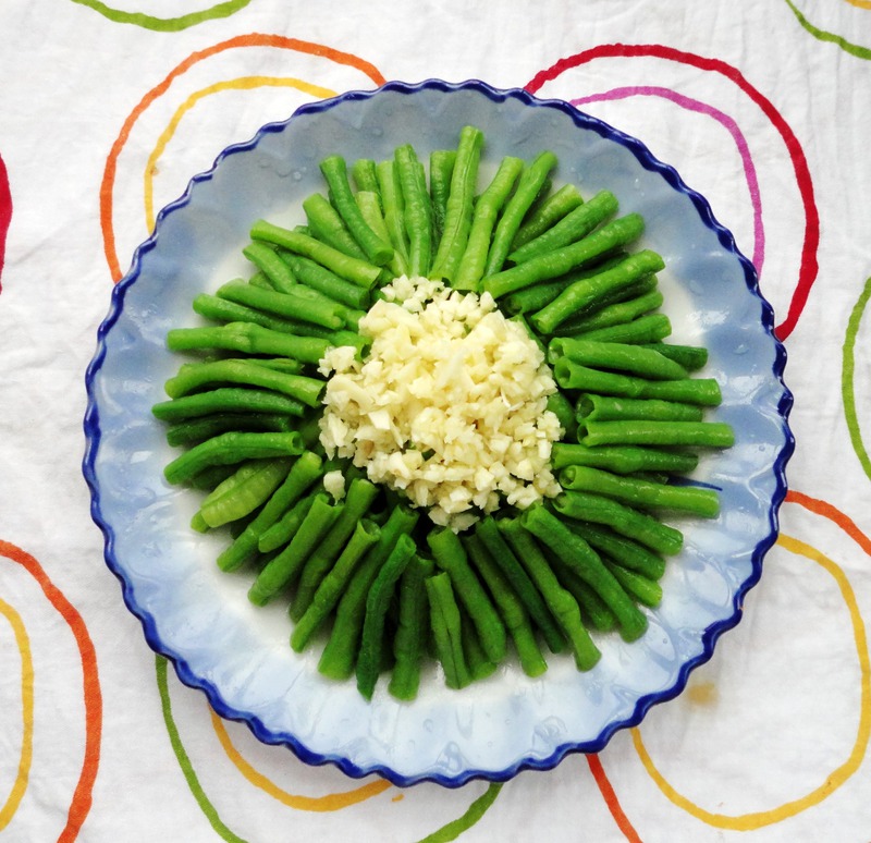 最近天气太热了,总感觉提不起什么食欲,总想吃凉一些的东西降降温,今天中餐做了个凉拌豆角,凉拌豆角色泽看上去比较清爽增加一下食欲。。。 做凉拌豆角时将蒜茸和豆角一起拌均匀口感会更好一些,因我家小宝年龄比较小还不能吃辣,我选择了把拍好的蒜茸放置于豆角的顶上而没有搅拌,这样小宝就可以丛边上吃,而大人吃的时候挑拌一下即可。。。