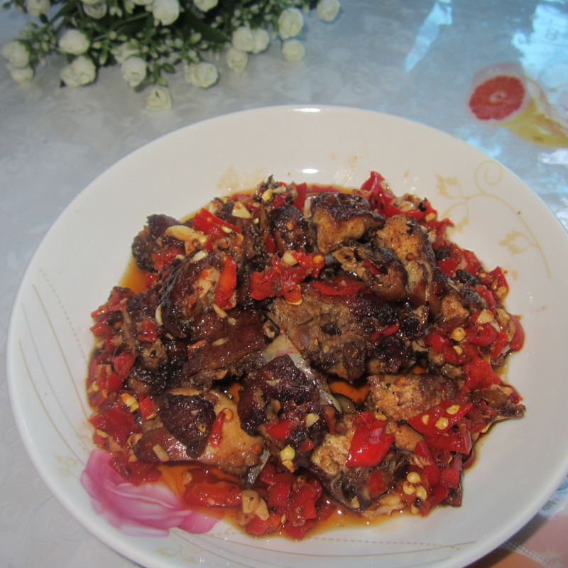 食材: 子鸡1只,调和油,辣椒酱,蒜米,香油。 调料: 花椒粉,十三香,孜然粉,生抽,调味鲜,糖。 方法: 1、子鸡去毛,内脏,头,肢, 2、加入所需要的调料腌制半天, 3、将腌制好的子鸡放进油锅里炸熟炸香, 4、捞出切块后,再次放进油锅里炸2分钟捞出装碗中待用。 5、备好辣子酱,蒜米,辣椒油和拌均匀。 6、倒在炸好的鸡块上,拌匀,淋上香油即成。