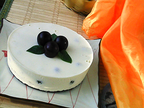 鱼胶粉(4克) / 奶油奶酪(150克) / 自制甜味酸奶(100克) / 葡萄粒(2碗) / 玉米面天使蛋糕底(1片)