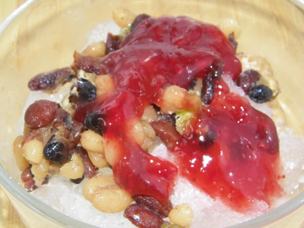砂糖(适量) / 果酱(适量) / 蜜豆(适量) / 冰块(适量) / 淡奶油或者炼乳都可以(适量)