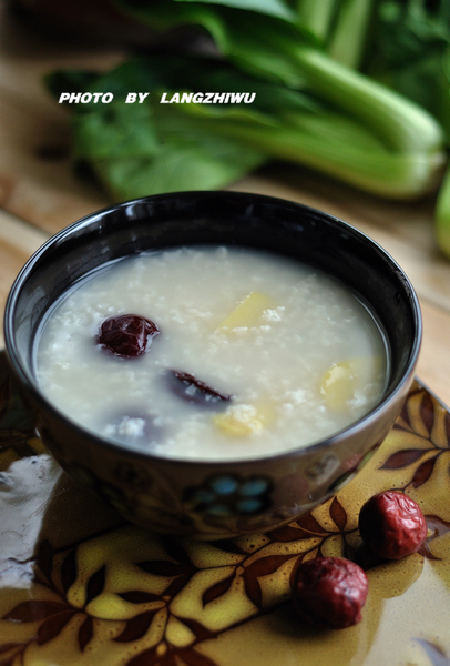 及以下步骤:生姜切薄片,红枣洗净。 大米淘洗干净后,放一汤匙植物油,拌匀腌渍30分钟。 生姜切薄片,红枣洗净。 大米淘洗干净后,放一汤匙植物油,拌匀腌渍30分钟。 生姜切薄片,红枣洗净。 大米淘洗干净后,放一汤匙植物油,拌匀腌渍30分钟。 生姜切薄片,红枣洗净。 大米淘洗干净后,放一汤匙植物油,拌匀腌渍30分钟。 砂锅里添水,水开后,倒入大米。 大火煮开后,倒入姜片、红枣改小火煮40分钟,至粥粘即可。