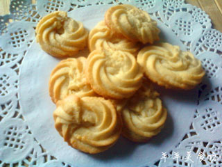 一直很羡慕会做曲奇的人,总觉得自己手笨,挤不出那么漂亮的形状! 还担心烤好之后花纹消失,落得个怅然无趣~~ 曲奇饼干吸引我们的,就是那清洗的纹路,没了纹路,就不是曲奇了~ 喜欢吃,又怕黄油的高热量!诸多原因加起来,就是我迟迟没有做曲奇的原因啦~~ 我承认,我是个动手能力不强的人,在学校上实验课时的互相扎针, 还有实习时给病人输液,我都是那么的胆小、笨拙、心软! 以至于还有重复三次才扎上针的情况! 然而, 我那时还真会自我安慰啊:我的专业又不是护理! 我是医生诶~~医生是诊断病情、开具处方的,扎针,那是护士干的活儿啊! 现在想想真是⊙﹏⊙b汗啊!感谢那个挨了三针才顺利输液的病人! 扯远了~~我要说的就是,我本不是个巧手主妇。o(∩_∩)o哈哈~ 有待以后多加磨练啊~~~~^_^ 第一次做曲奇,居然还不错~~心中一阵窃喜啊^_^
