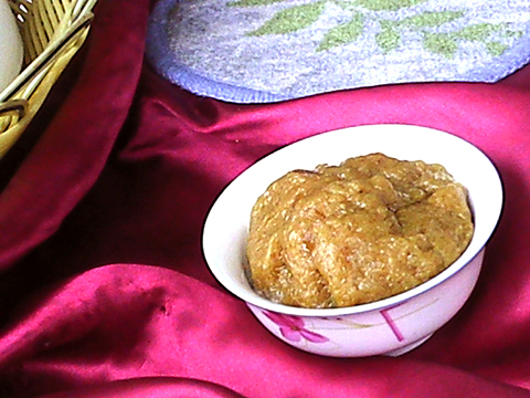 做这个馅主要是为了解决掉冰箱里的菠萝冰激凌。夏天已经过去了,不会再有人吃了。猛然想到是不是可以用它来做成月饼馅,想到之后很快就付诸实践了。因为担心这么点菠萝冰激凌做成馅可能会太少,所以就加了菠萝酱。这菠萝冰激凌的用料是奶油,菠萝酱,淀粉,可能还会有牛奶的成分吧。所以就叫了奶香菠萝馅,不过奶香的味道倒不是那么明显。