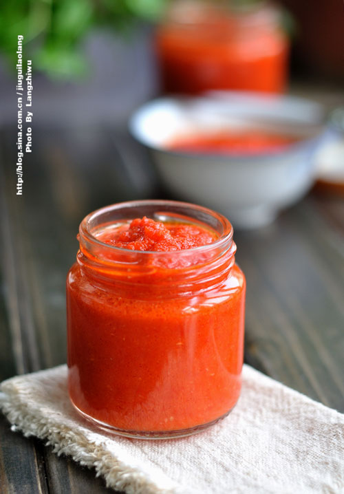 这是一款专门为了饺子而做的辣酱,酸甜口味的,不要被它的火红的色泽迷惑,其实它不是很辣。 因为放了西红柿、白糖、白醋,这款酱的味道是:鲜甜酸辣,用来蘸饺子吃真的不错。细火炒制的酸辣饺子酱,吃的时候反而盖过了饺子的味道。 从没想过要为了饺子专门做一款专用的辣椒酱,感觉没有必要。但每次吃饺子时候勾兑调汁的时候就觉着麻烦,就又想:要是有瓶专用的饺子辣椒酱就省事多了。想要吃的舒服、解馋就要自己动手。