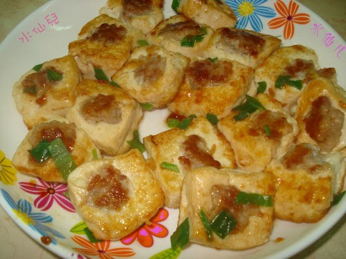 及以下步骤:煎2、3分钟后翻过来再中火煎2分钟。 步骤二煎:把釀好的豆腐(不能放置太久因为豆腐会出水),有肉的一面朝下放入平底锅内煎。 煎2、3分钟后翻过来再中火煎2分钟。 步骤二煎:把釀好的豆腐(不能放置太久因为豆腐会出水),有肉的一面朝下放入平底锅内煎。 煎2、3分钟后翻过来再中火煎2分钟。 步骤一:釀 步骤二煎:把釀好的豆腐(不能放置太久因为豆腐会出水),有肉的一面朝下放入平底锅内煎。 煎2、3分钟后翻过来再中火煎2分钟。 再一次把有肉的一面翻过来煎,加入生抽和生粉调成的粉水勾芡加盖1分钟。 最后洒入葱花即可上碟。