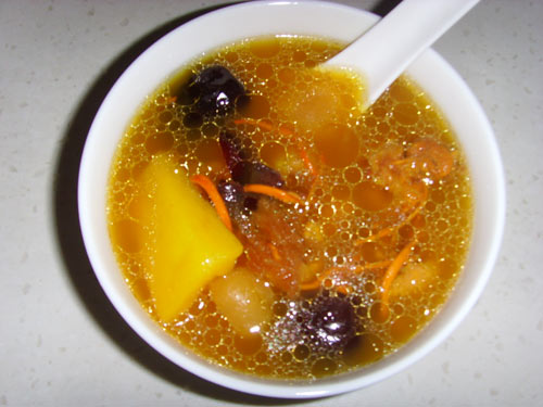 及以下步骤:虫草花、红枣洗净备用。 鸭子洗净斩件,冷水下锅加姜片出出血水。 虫草花、红枣洗净备用。 鸭子洗净斩件,冷水下锅加姜片出出血水。 虫草花、红枣洗净备用。 鸭子洗净斩件,冷水下锅加姜片出出血水。 虫草花、红枣洗净备用。 鸭子洗净斩件,冷水下锅加姜片出出血水。 桂圆肉浸软,淮山去皮切块。 把所有材料放入煲内,加入一块姜片,注入清水,大火烧沸改文火煲二小时左右,加盐调味即可。