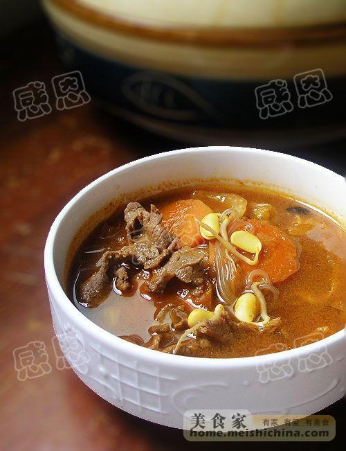 盐(适量) / 香油(适量) / 胡萝卜(适量) / 食用油(适量) / 牛肉(适量) / 白菜(适量) / 韩国辣酱(适量) / 粉条(适量) / 黑豆芽(适量) / 淘米水(适量) / 韩国黄豆酱(适量)
