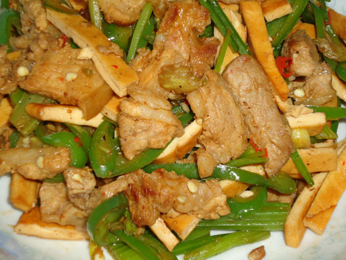 及以下步骤:五花肉一块煮熟,切成薄片。 在切好的五花肉里挑一些肥肉出来,放到锅里炸一些猪油。 待肥肉炸好后,放入剩下的五花肉。 加少许老抽,盐,五香粉和一勺豆瓣酱。 加入香干翻炒。 加青椒和香芹翻炒片刻,出锅前加少许鸡精即可。 待肥肉炸好后,放入剩下的五花肉。 加少许老抽,盐,五香粉和一勺豆瓣酱。 加入香干翻炒。 加青椒和香芹翻炒片刻,出锅前加少许鸡精即可。