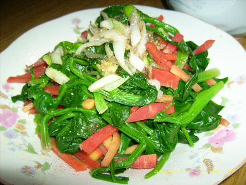 今晚我做了个凉拌莱想给大家瞧瞧,蒜汁菠菜胡萝卜。我是第一次上传图片,做的不好让大家见笑了。
