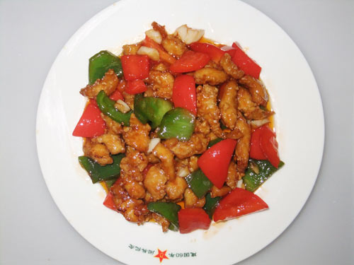 及以下步骤:菜椒过一下油,快速捞出。 锅内倒油加热,放蒜末炒香。 再放入番茄酱、白糖、醋、盐,加适量水炒匀。 放入炸好的鸡块、菜椒块,炒匀即可。 炒好的鸡脯肉装盘。 菜椒过一下油,快速捞出。 锅内倒油加热,放蒜末炒香。 再放入番茄酱、白糖、醋、盐,加适量水炒匀。 放入炸好的鸡块、菜椒块,炒匀即可。 炒好的鸡脯肉装盘。