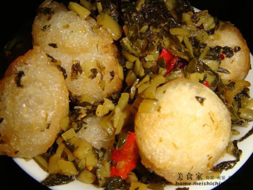 及以下步骤:..... 锅底留少许油加入雪菜翻炒。 加入炸好的汤圆。 翻炒均匀。 起锅装盘。 ..... 锅底留少许油加入雪菜翻炒。 加入炸好的汤圆。 翻炒均匀。 起锅装盘。