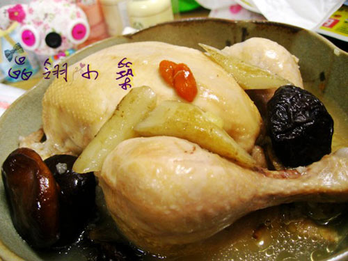 香菇(6朵) / 糯米(半杯) / 枸杞子(15颗) / 童子鸡(1只) / 牛蒡(1根) / 麦冬(15粒)